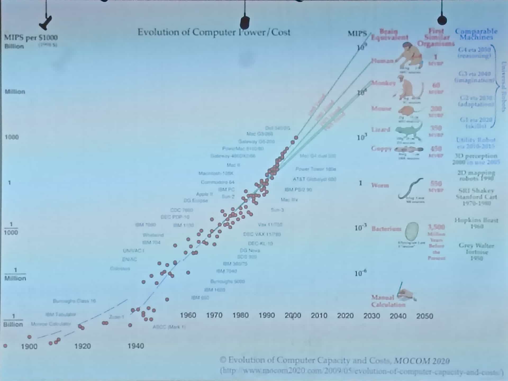 左:在3-8年的时间里,将出现一台具有普通人正常智力的机器。(1970年)