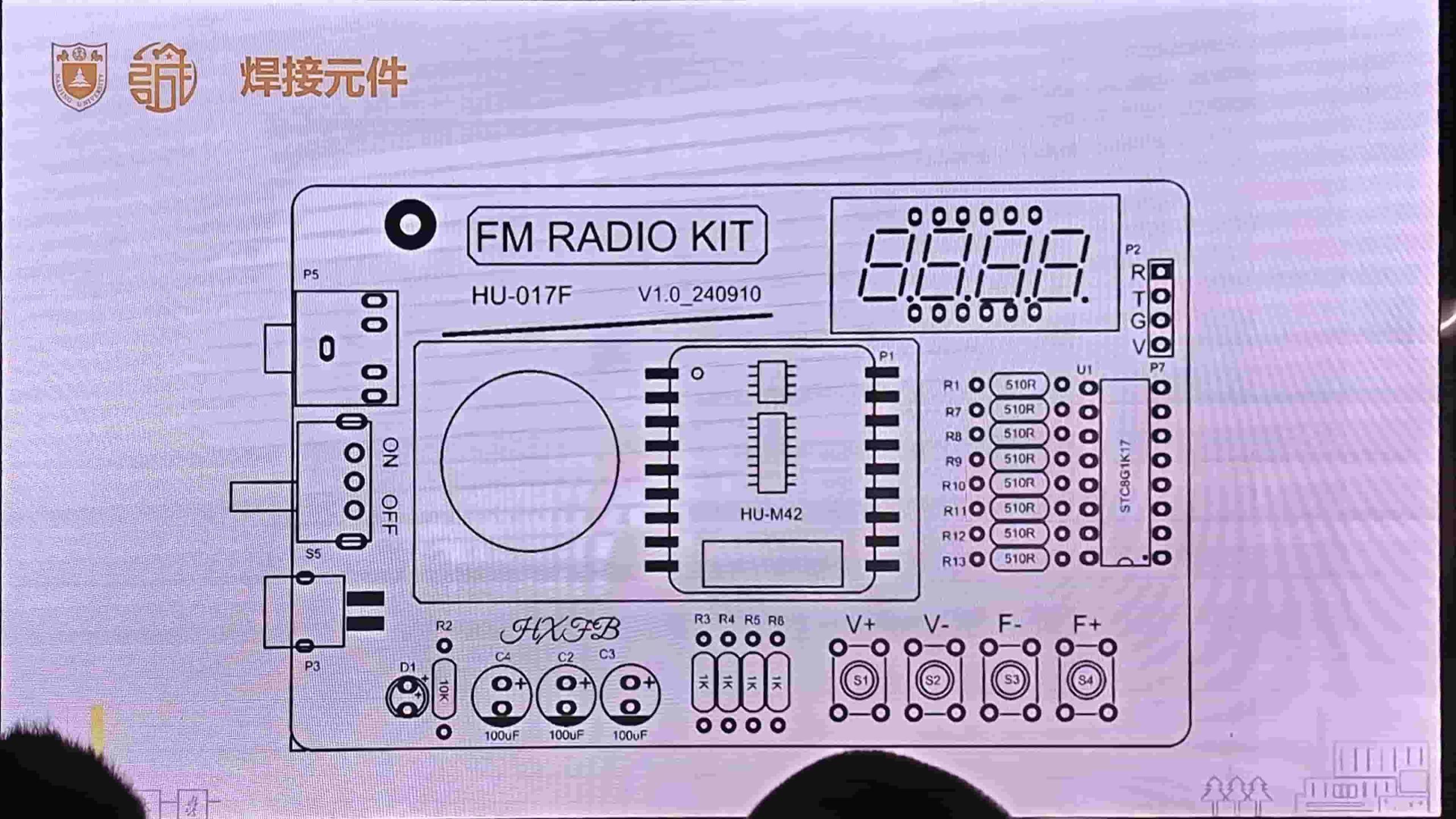 发下来的元件包像是网上卖的 DIY 套件。有一张很详细的说明书,还可以扫二维码看视频。