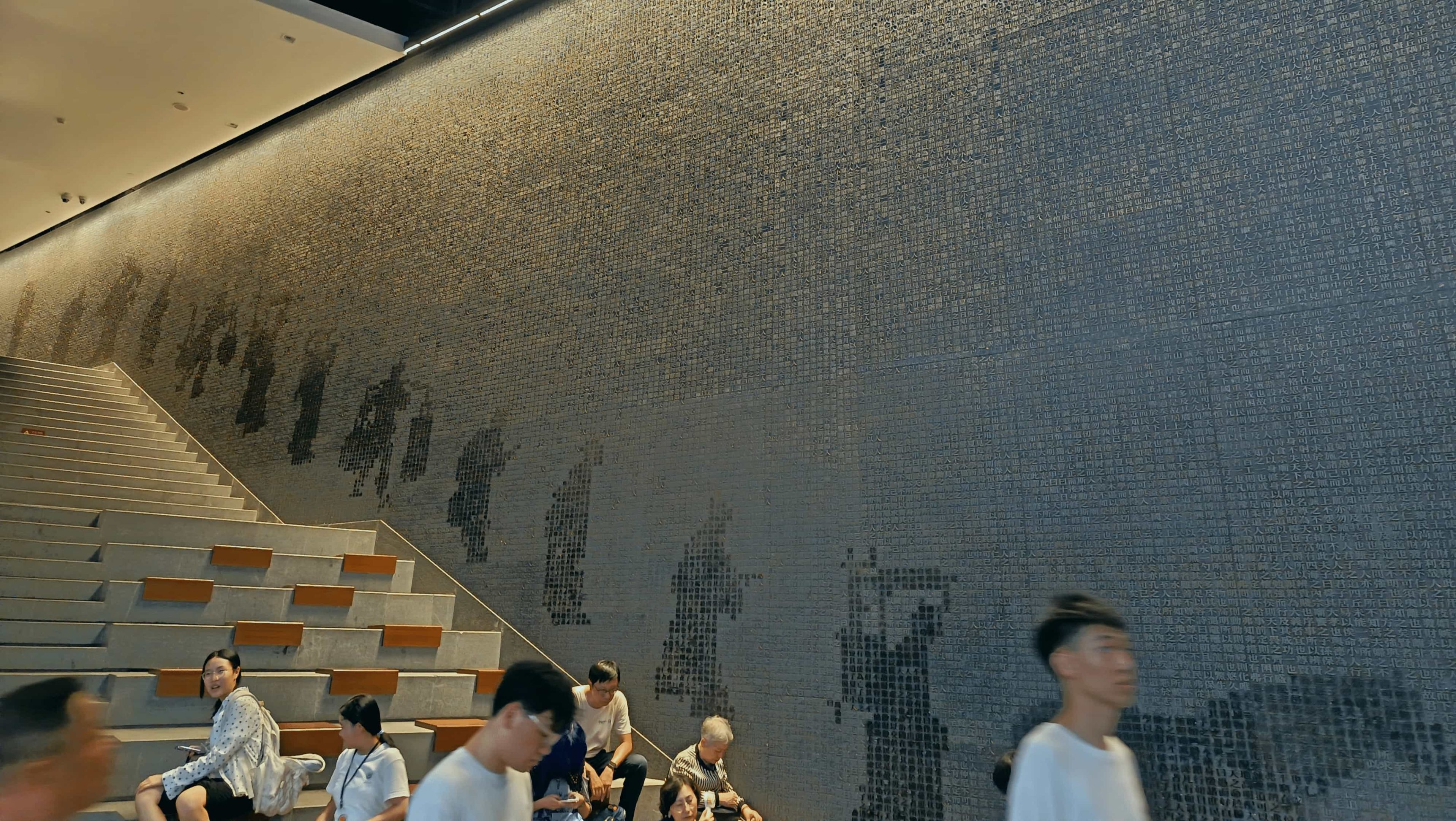 南大仙林图书馆台阶。当时下着小雨,淋了有六七分钟。