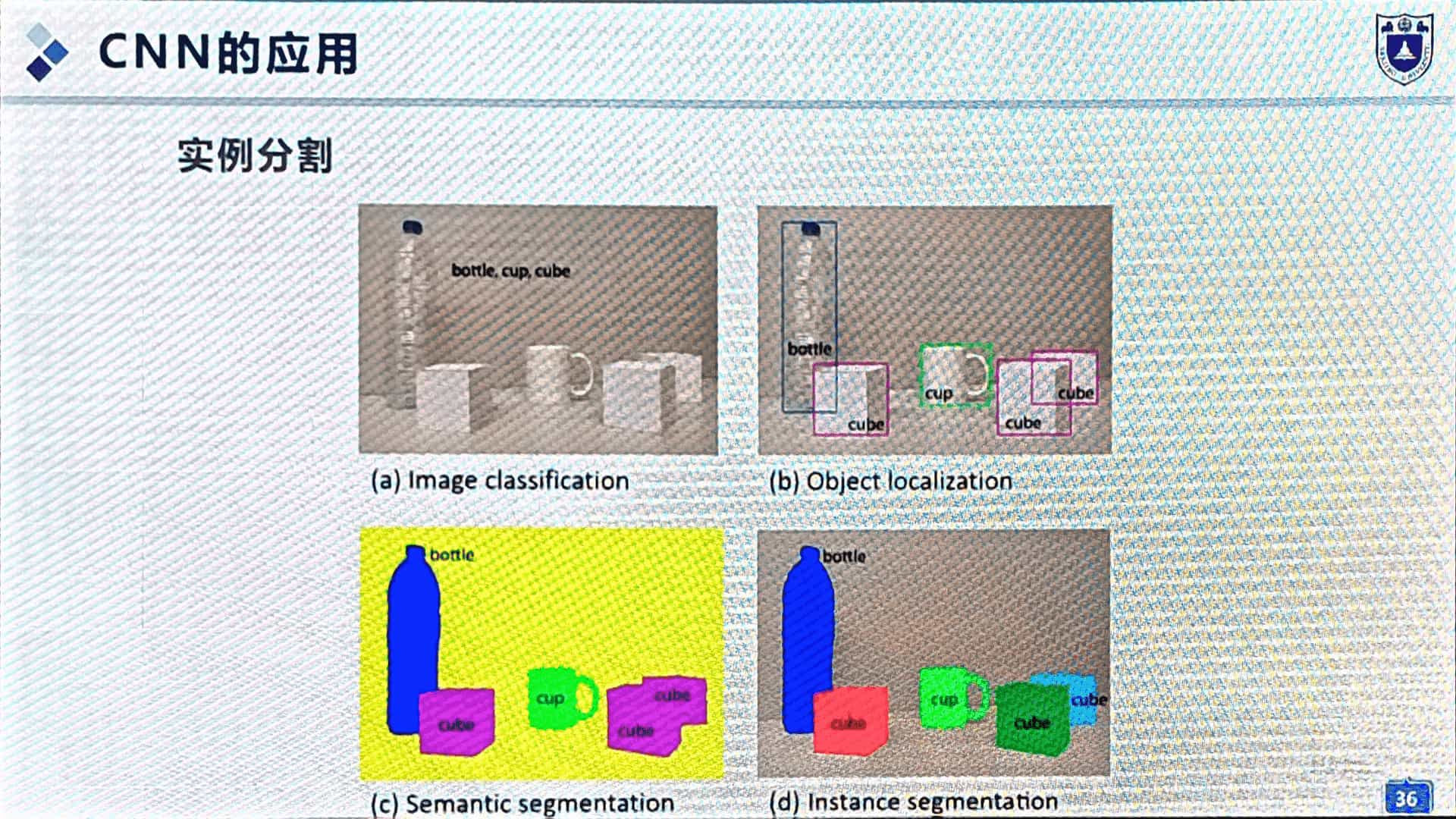 (a) 图像分类;(b) 目标检测;(c) 语义分割;(d) 实例分割。(图17)