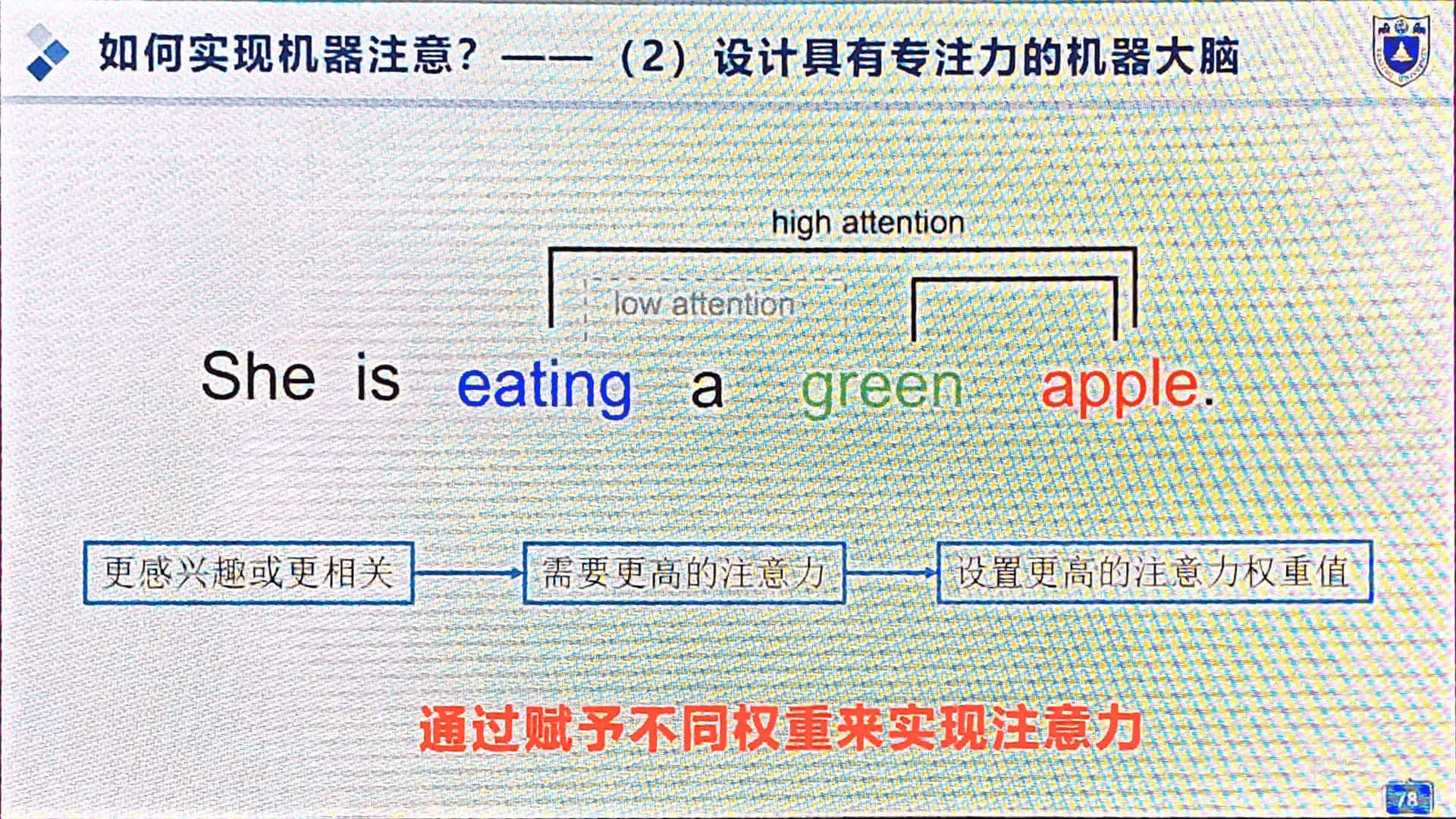 图36所示,eating 和 green 不相关,设置较低的注意力权重值。
