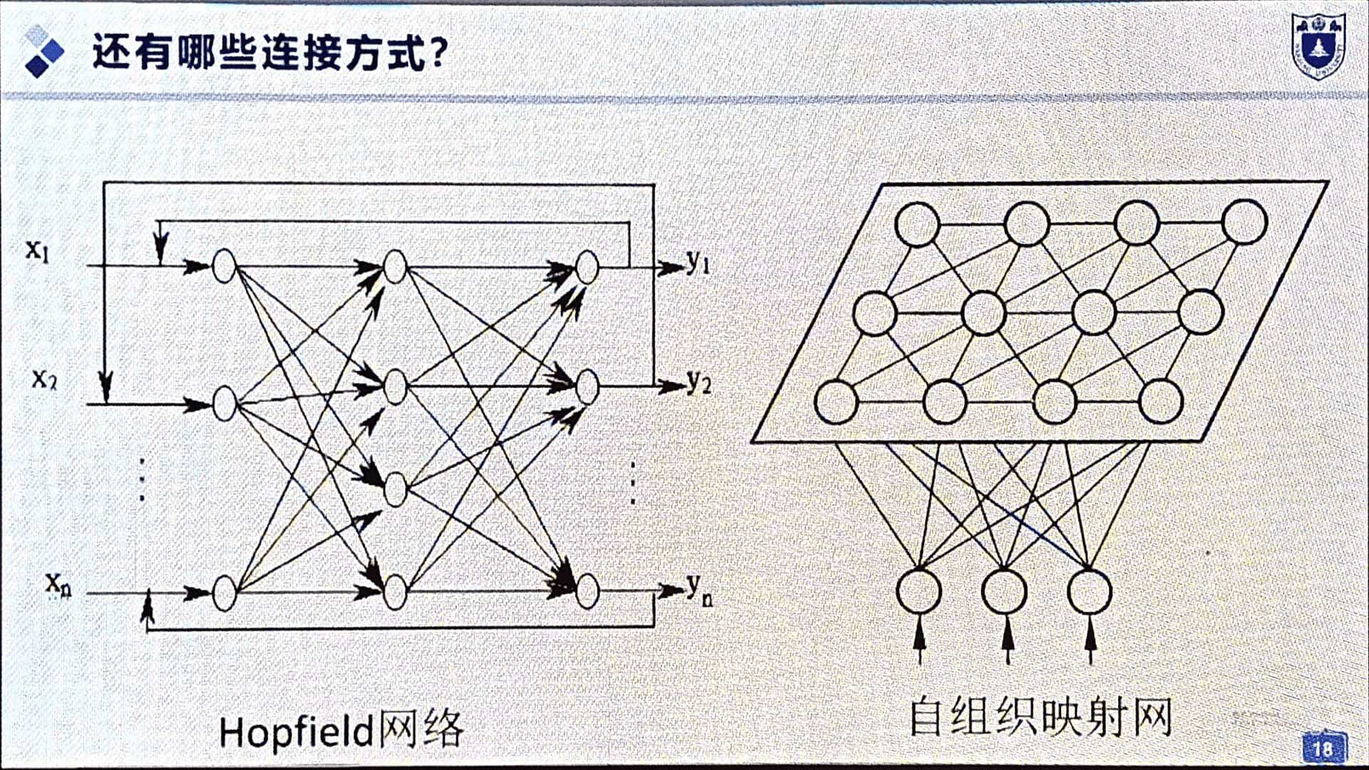 Hopfield 网络:反馈连接、联想记忆。
