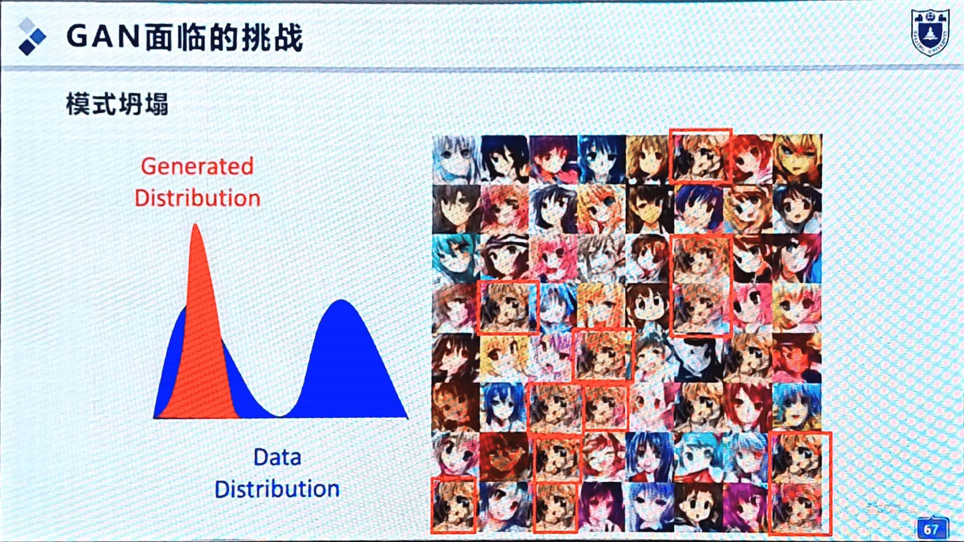 模式坍塌:生成器的功能,从取悦人变为骗过判别器。内容范围少,出现重复图片。(图30)