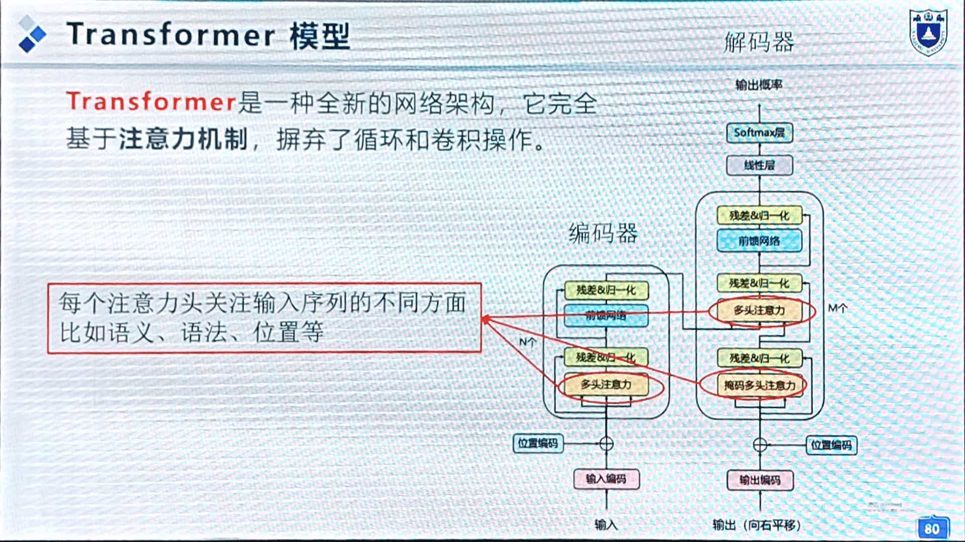 多头注意力机制,处理序列数据。(这节课和上一节课都没听懂,“多头”是个什么东西。QWQ)