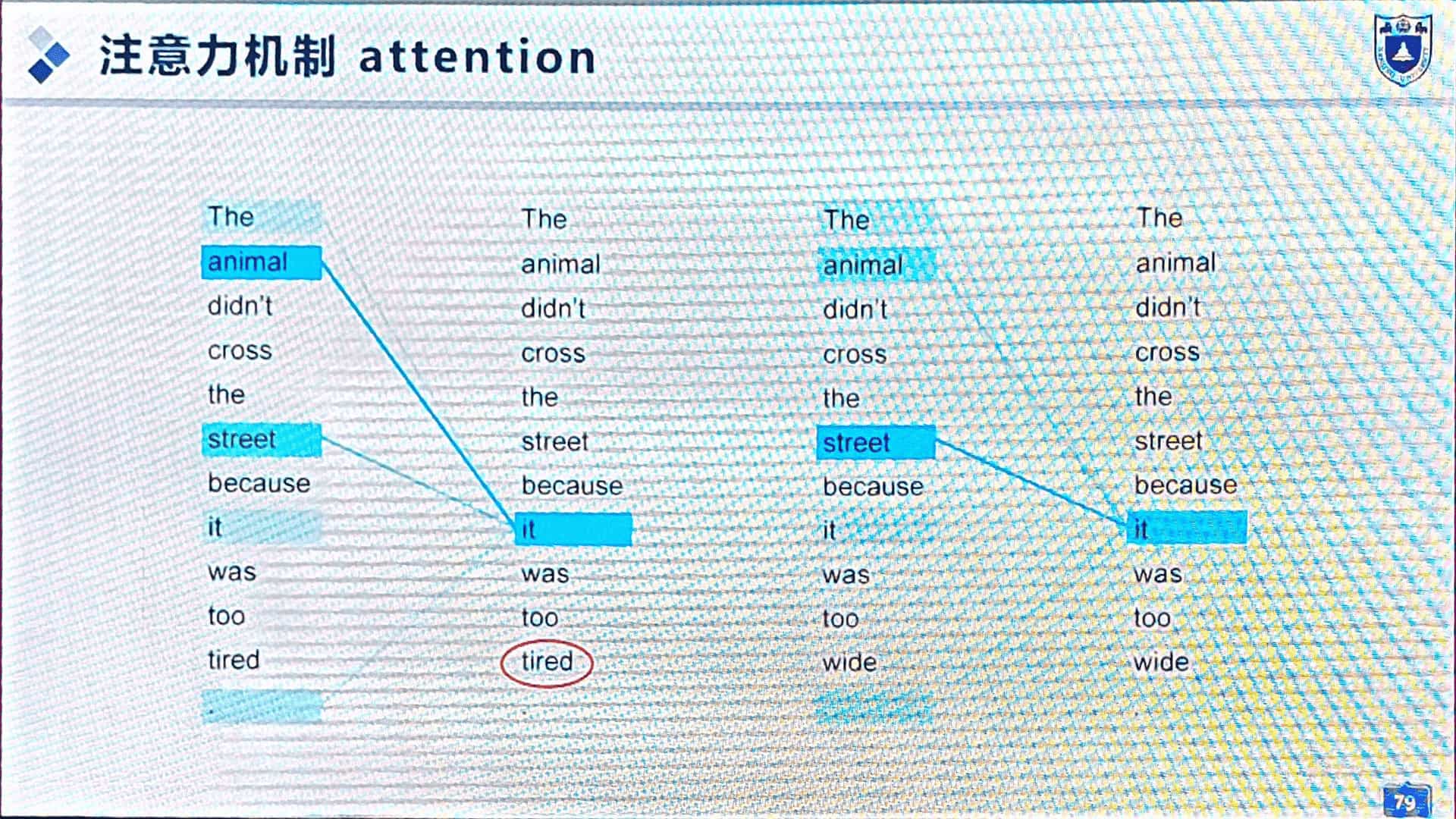 图37所示,更换单词 tired → wide,代词“it”的注意力权重发生改变。